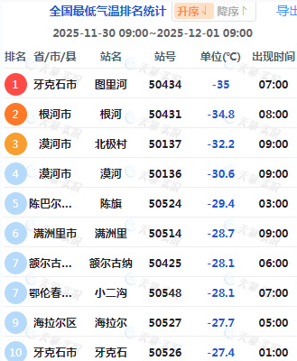 在寒潮影响下,今天早晨,内蒙古图里河站最低气温达到-35℃,个别区域站还达到了-40℃,光看这数字都仿佛感受到阵阵寒气了。